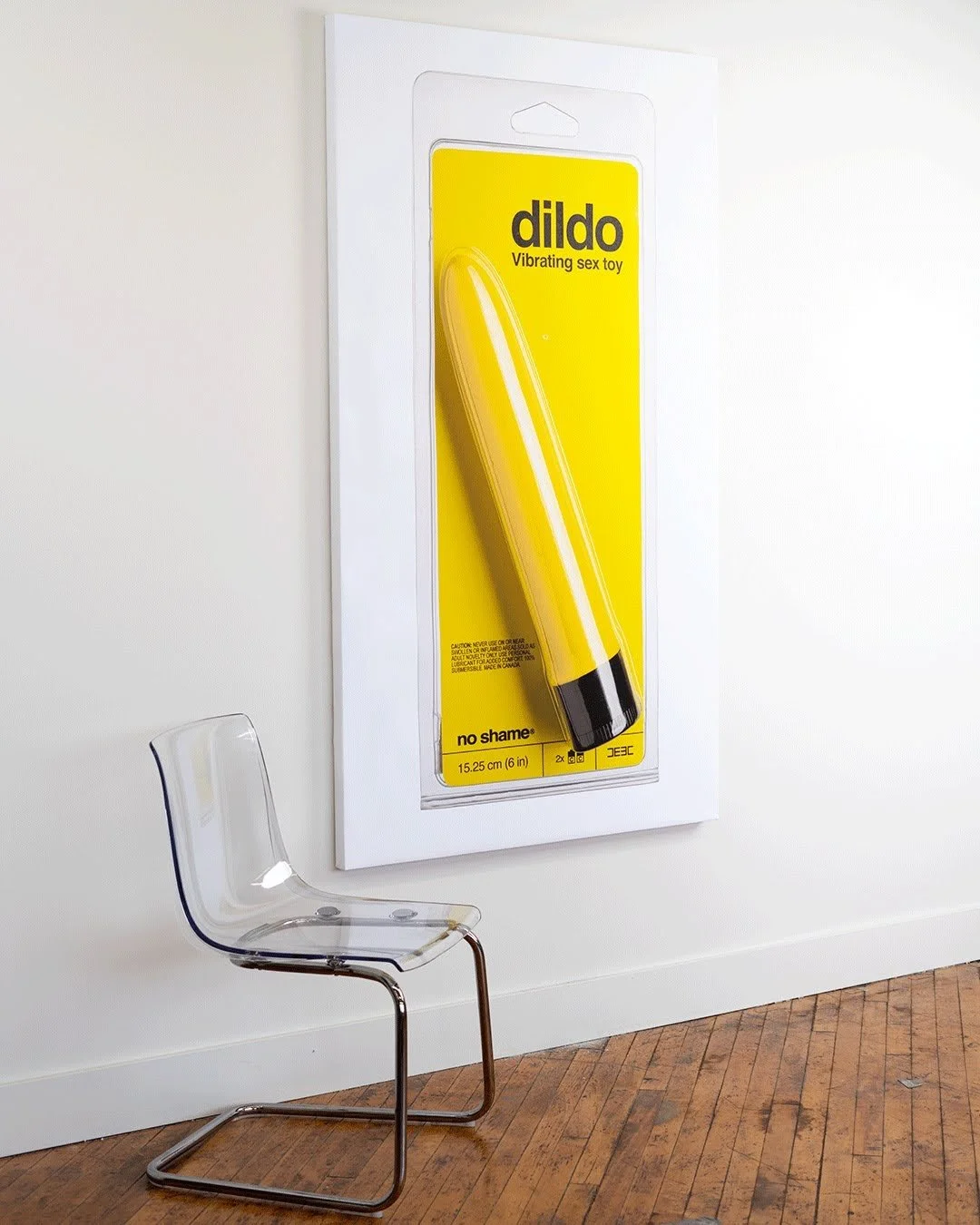 “no shame parody dildo printed on canvas and displayed at DEECE studio”