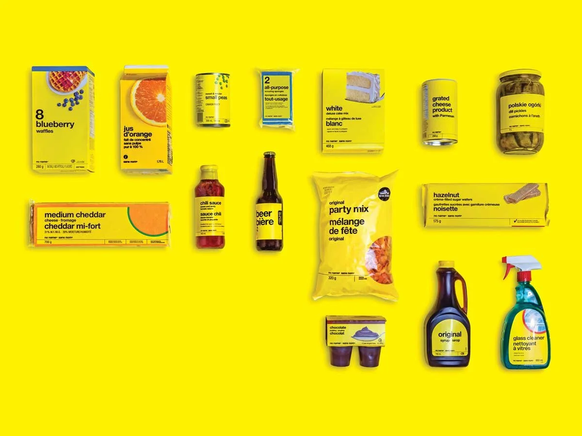 For the internationally unacquainted: in Canada, our grocery shelves are lined with products from a brand called “‘no name® (owned by Loblaws, Canada’s largest grocery and pharmacy retailer). Easily recognizable and absolutely iconic, the brand’s simple yellow background, lower-case Helvetica lettering, and minimal imagery (if any) make it stand out from everything else down the grocery aisle. I’d say it’s a pretty genius design — bold, unique, and positioned as the affordable alternative to the flashy, in-your-face brands a shelf over.